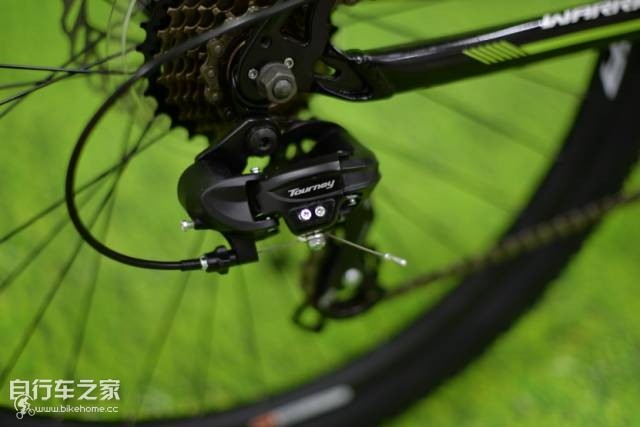 [自行车之家单车导购]铝合金21速碟刹,搭配全新的铝合金车架,整体看上去简易精干,重点是这个价位的指拨、前后变速器还都用禧玛诺的,要说最贴心的就是整合式车撑了,再也不用怕锁固不牢靠划伤车架了。
