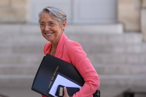 7月4日,法国总理伊丽莎白·博尔内抵达巴黎总统府爱丽舍宫参加新内阁首次会议。 新华社发(朱利安·马蒂亚摄)