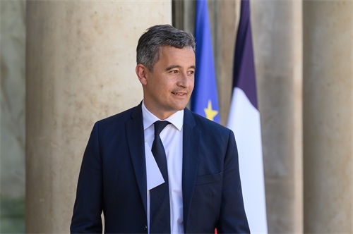 7月4日,法国内政部长热拉尔德·达尔马宁抵达巴黎总统府爱丽舍宫参加新内阁首次会议。 新华社发(朱利安·马蒂亚摄)