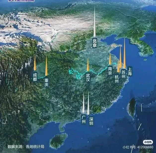 图9,中国十大城市分布图。可以看出中国地形河流分布情况。