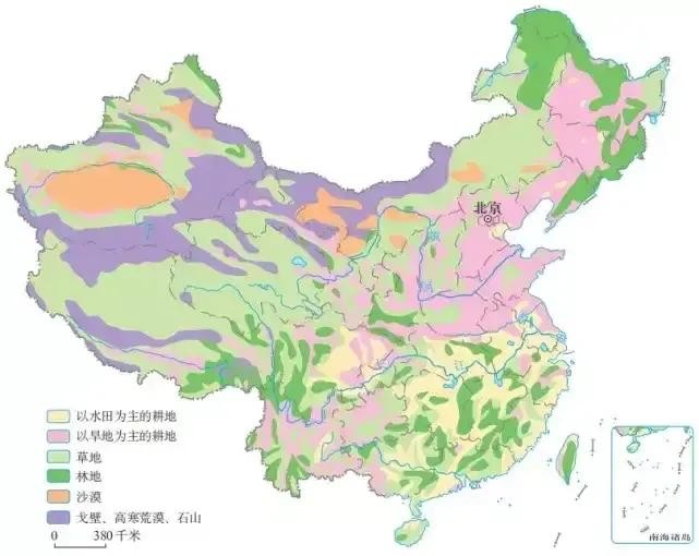 图36,我国土地类型分布图。可以很明显看到,我国的耕地并不多。