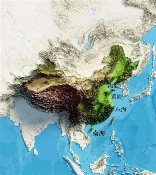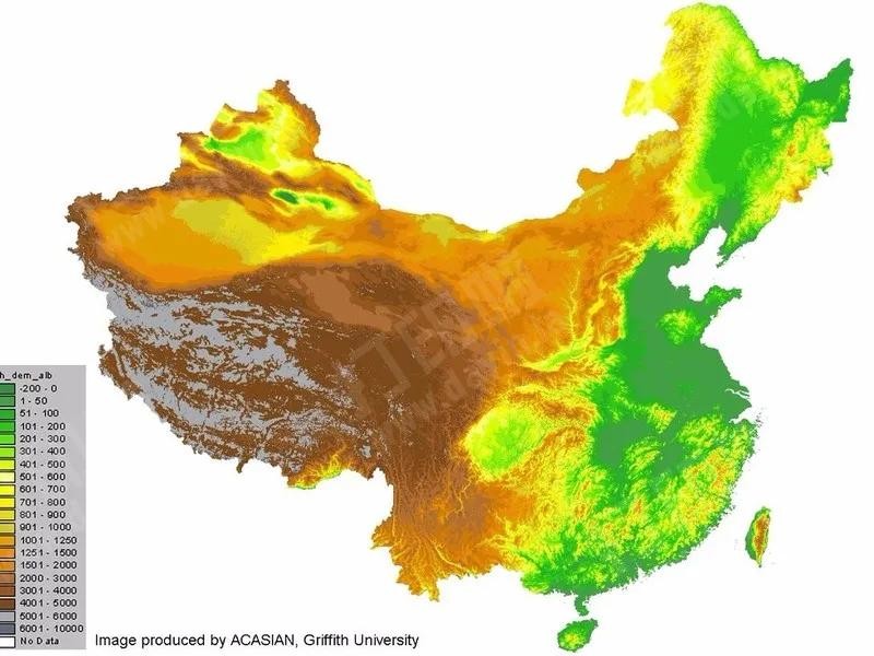 图3,中国以及周围地区的地势图。