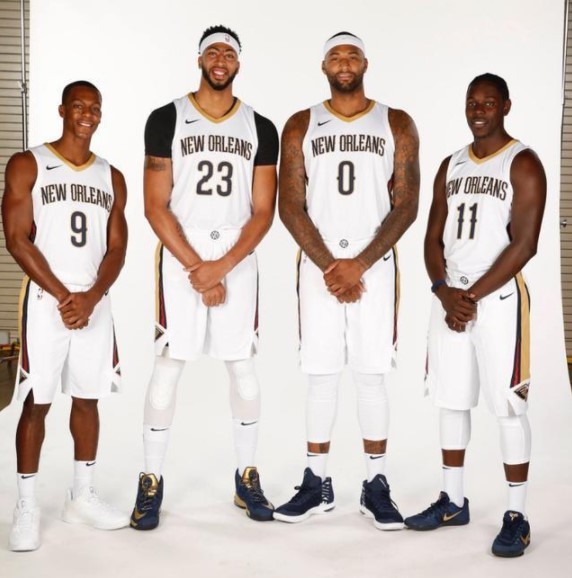 2013年,新奥尔良黄蜂队更名为鹈鹕队,不过在此之前,球队通过选秀,手握状元签得到了浓眉哥安东尼-戴维斯之后开启了季后赛复兴之路。在连续的交易操作之后,鹈鹕队正式确立了以朱-霍乐迪,此前交易保罗得到的埃里克-戈登,泰瑞克-埃文斯为核心首发的阵容。在这套合理且非常年轻的阵容,球队不断进步,2014-15赛季,球队成功打进季后赛,不过在首轮便以4-0被勇士队横扫出局。在接下来的赛季里,球队始终在季后赛得不到进步,虽然交易得到当时的第一中锋德马库斯-考辛斯,组成联盟最强的内线双塔组合,但是球队仍然以失败告终。