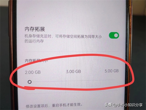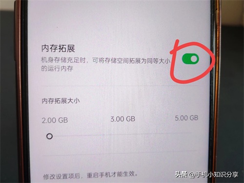 可以看到有一个按钮,将其打开。打开后,当机身存储充足时,可将存储空间拓展为同档大小的运行内存,(如上图所示)