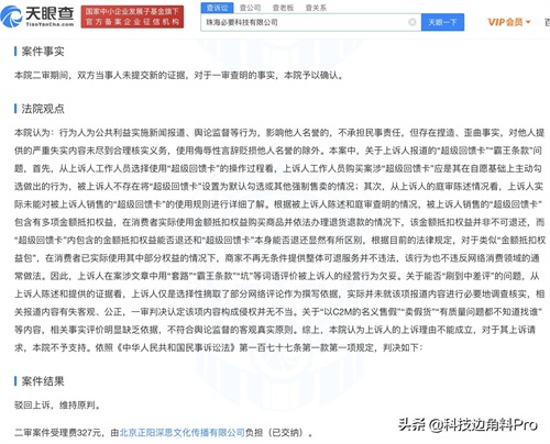 北京法院审判信息网日前公开日北京正阳深思文化传播有限公司与珠海必要科技有限公司相关网络侵权责任纠纷二审判决结果,北京市第四中级人民法院维持一审原判,正阳深思公司被判删除其发布的涉案文章,通过“科技E侠”微信公众号连续十日发布致歉声明、向必要公司赔礼道歉,赔偿必要经济损失40000元、公证费7748元、律师费5000元。