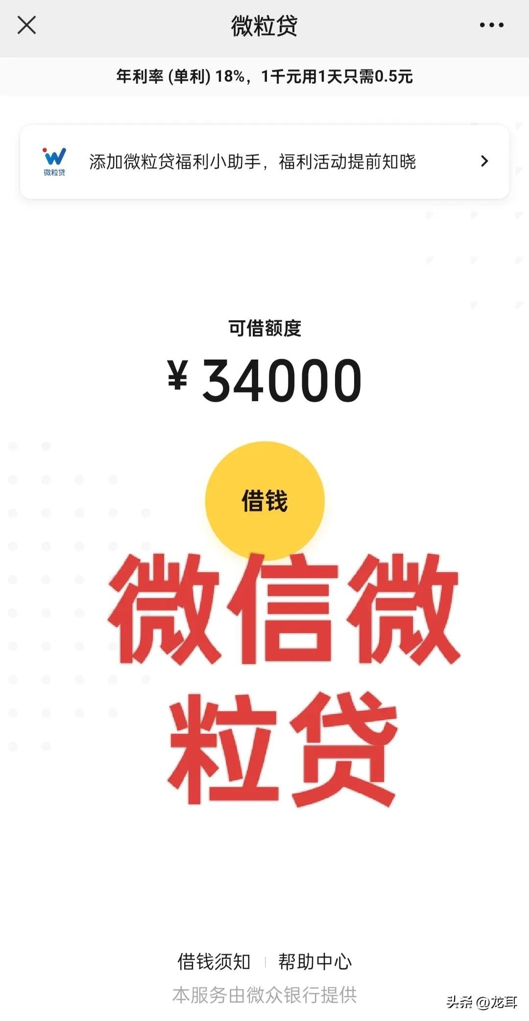 2.腾讯系,微信平台上的微粒贷,天天都能看见这个广告。这个贷款的利率是多少呢?大家请看下图,年化利率是18%。
