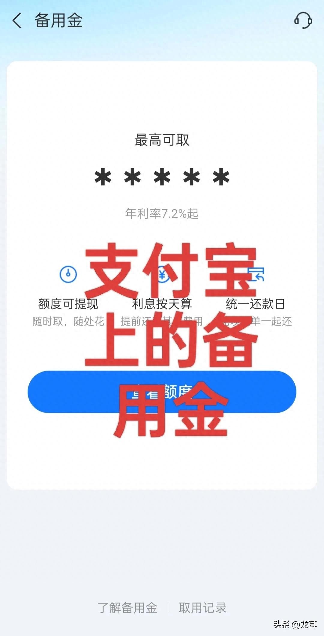 1.阿里系支付宝平台上的备用金,年化利率最低7.2%。当然,阿里系的支付宝上,还有借呗,借呗的额度和利率不知道,应该也不低。