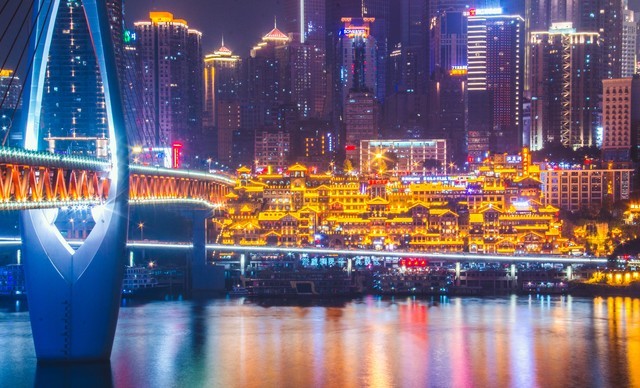 1.洪崖洞的夜景,倒映江面,如梦如幻。