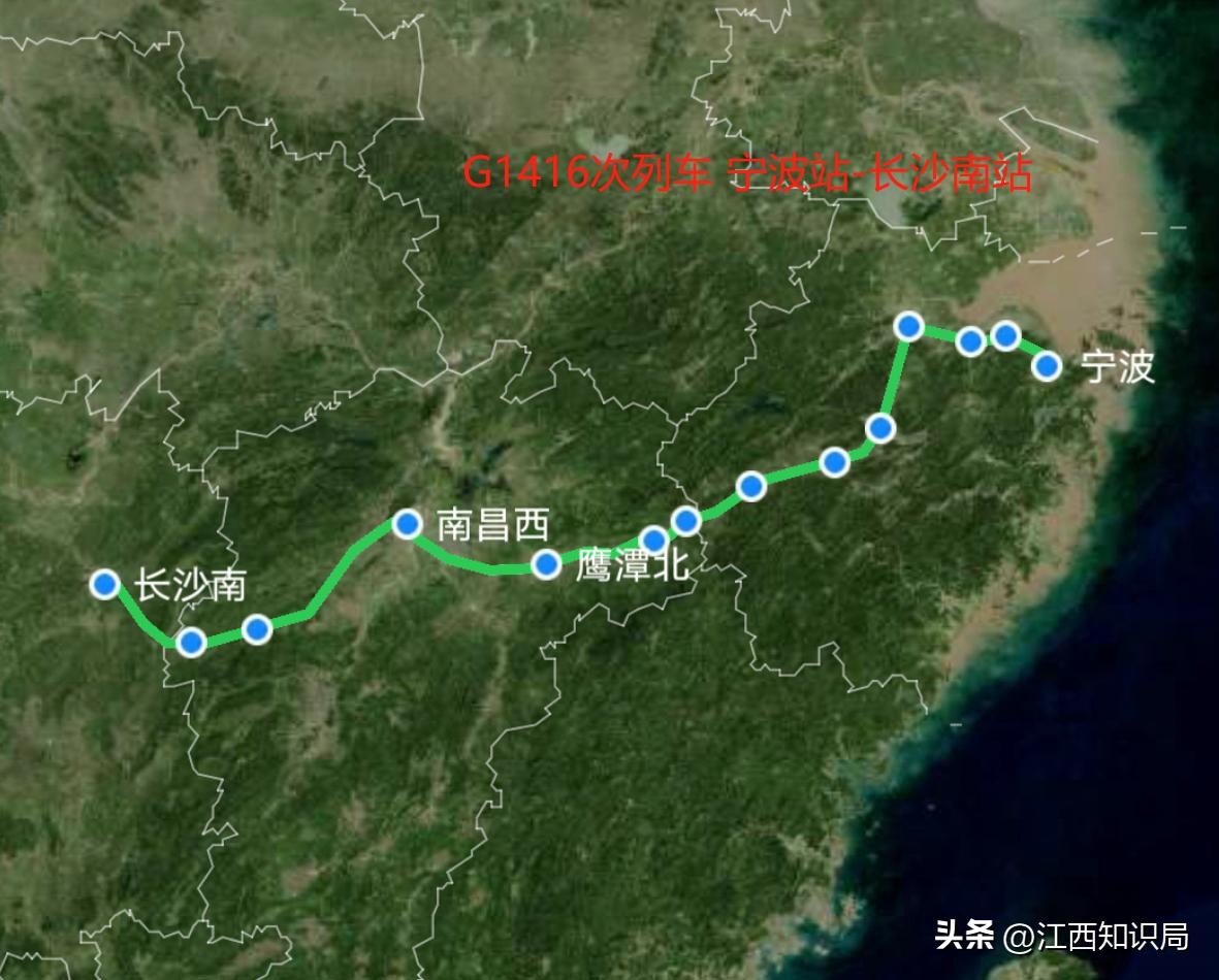 宁波至长沙高铁,杭州南站转向,G1416次列车耗时6小时5分钟