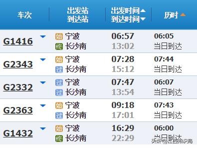 目前,宁波至长沙每天有5个车次的高铁,其中,G1432次列车为最快车次,用时6小时。