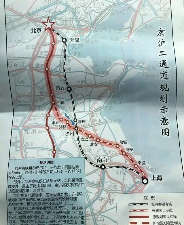 以上是关于京沪高铁二线的网友建议方案,将京雄商高铁与徐宿淮盐高铁连接,成为另一种方案的京沪高铁辅助线路。虽然该方案没有被最终采纳,但是现在在国家的交通强国方案中,将京雄商高铁纳入副线功能,应该有这类考虑吧。
