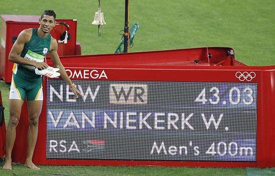 2016年,范尼凯克延续了火热状态,里约奥运会半决赛隐藏实力,跑出44.45排名第八,因此被分在最外道,决赛火力全开,跑出43.03的成绩夺冠并且打破世界纪录,仔细分析他的4个百米分段用时(10.77,9.81,10.48,11.97),基本上做到了合理分配体能,相比于前世界纪录保持者迈克尔约翰逊的43.18(11.10,10.12,10.44,11.52),似乎要逊色一些,但是迈克尔约翰逊前300米落后范尼凯克0.6秒(隔空之战),可以看出,范尼凯克的速耐丝毫不亚于约翰逊。