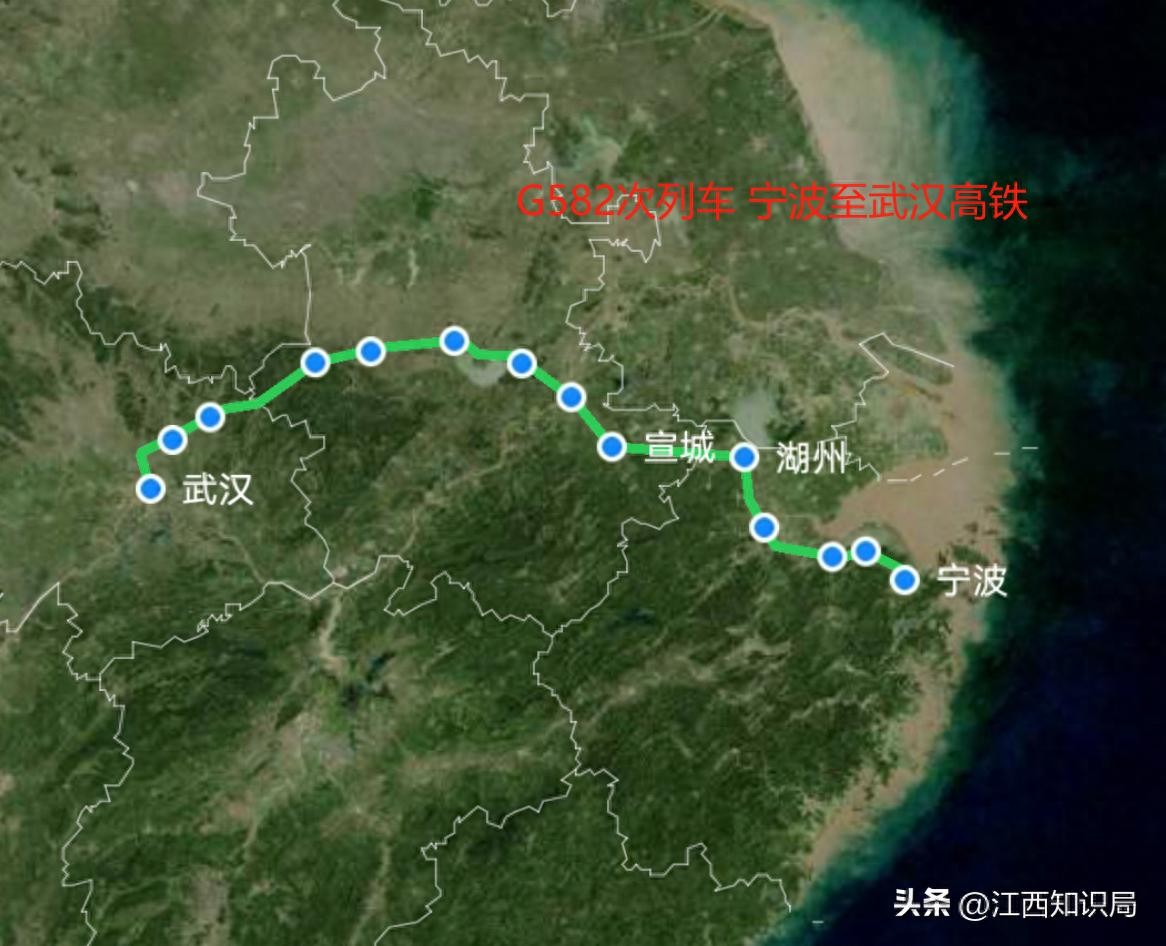 宁波至武汉高铁,途经合肥,G582次列车耗时5小时39分钟