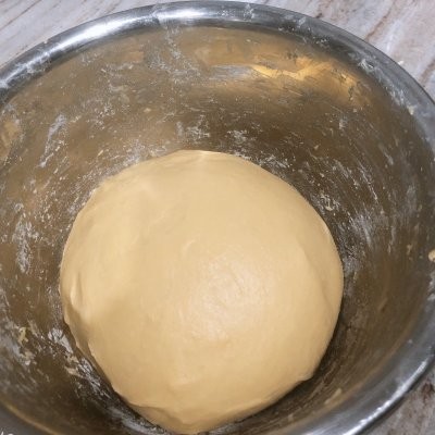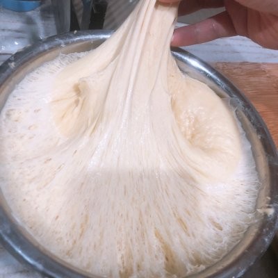 6、有面包机或者厨师机比较省事,不然还是蛮累的哈,揉半小时左右,能拉出手套膜,把面团揉圆放盆里,上面抹上油防沾,盖上保鲜膜