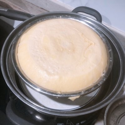 15、隔水或者放烤箱,里面放盆热水,醒发至八分满,盖上盖子,放入烤箱下层(烤箱需提前预热15分钟)上下火160度,烤20分钟