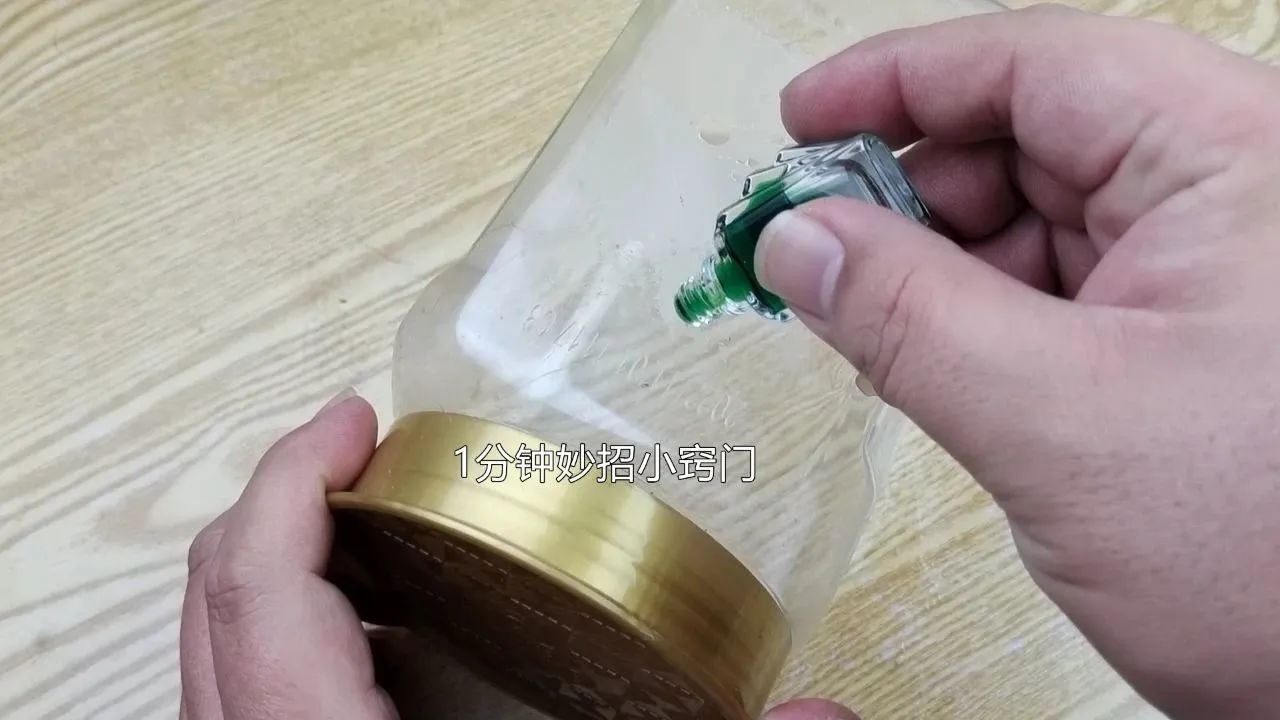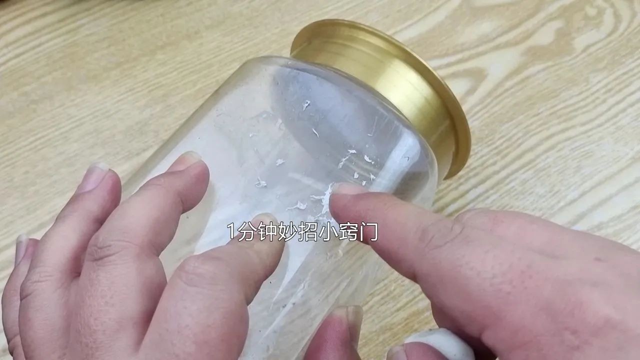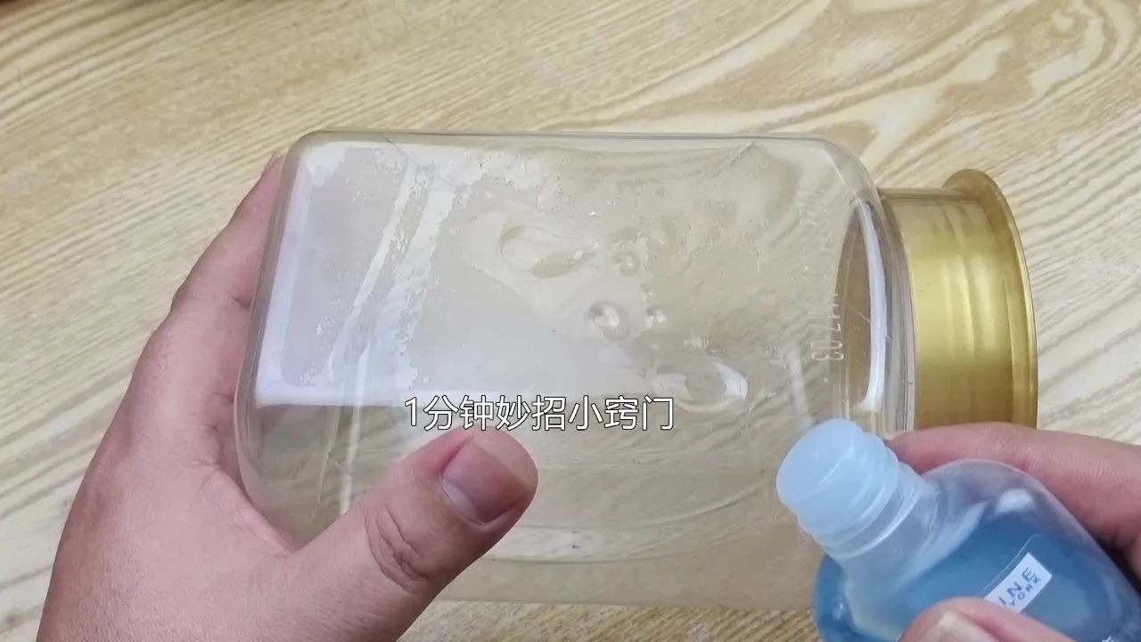 第二个方法,尽管我们使用吹风机可以完整地撕下标签,但有些标签还是会留下难以去除的胶印。这些胶印不论你是用洗洁精还是开水泡都无法清除。此时,我们只需在胶印上倒上一点酒精,酒精浓度可以选择稍高的。涂抹均匀后让它静置一会儿。然后用抹布擦拭一下,胶渍就轻松地被擦下来了。这个方法的原理很简单,因为酒精是一种有机溶剂,能溶解一些不溶于水的物质,比如这种残留的不干胶的胶渍。
