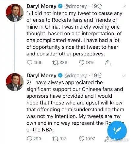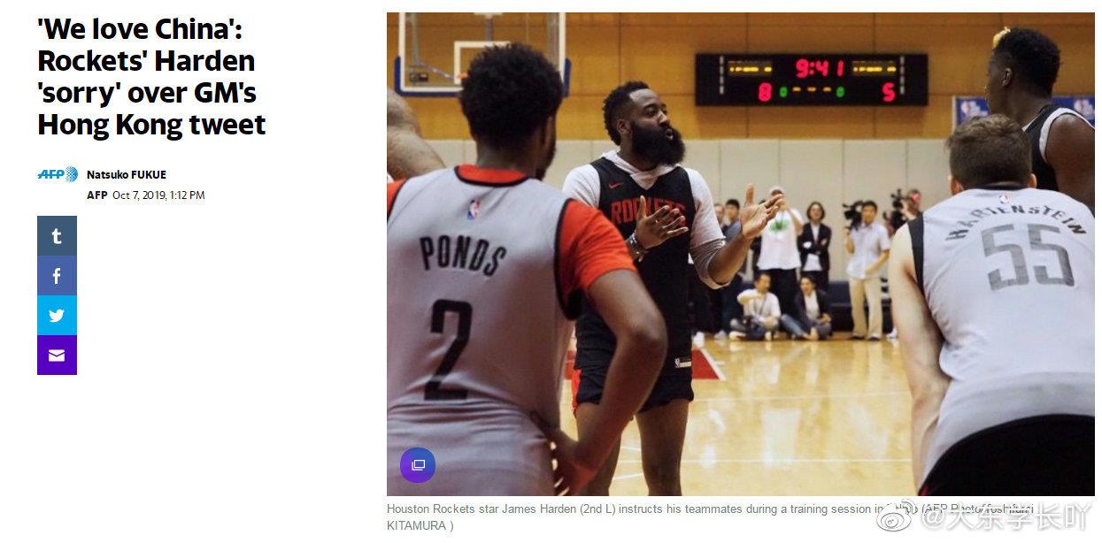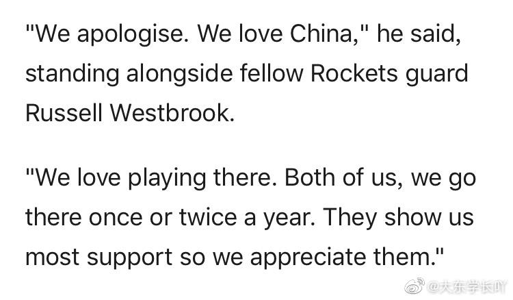 火箭队哈登@哈登中文网Harden 和威少就莫雷一事道歉:”我们道歉