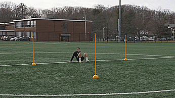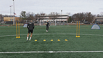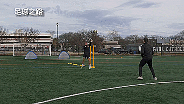 第四个练习,也是以一个协调性练习开始,然后到一个假人面前赢得一个高空球。