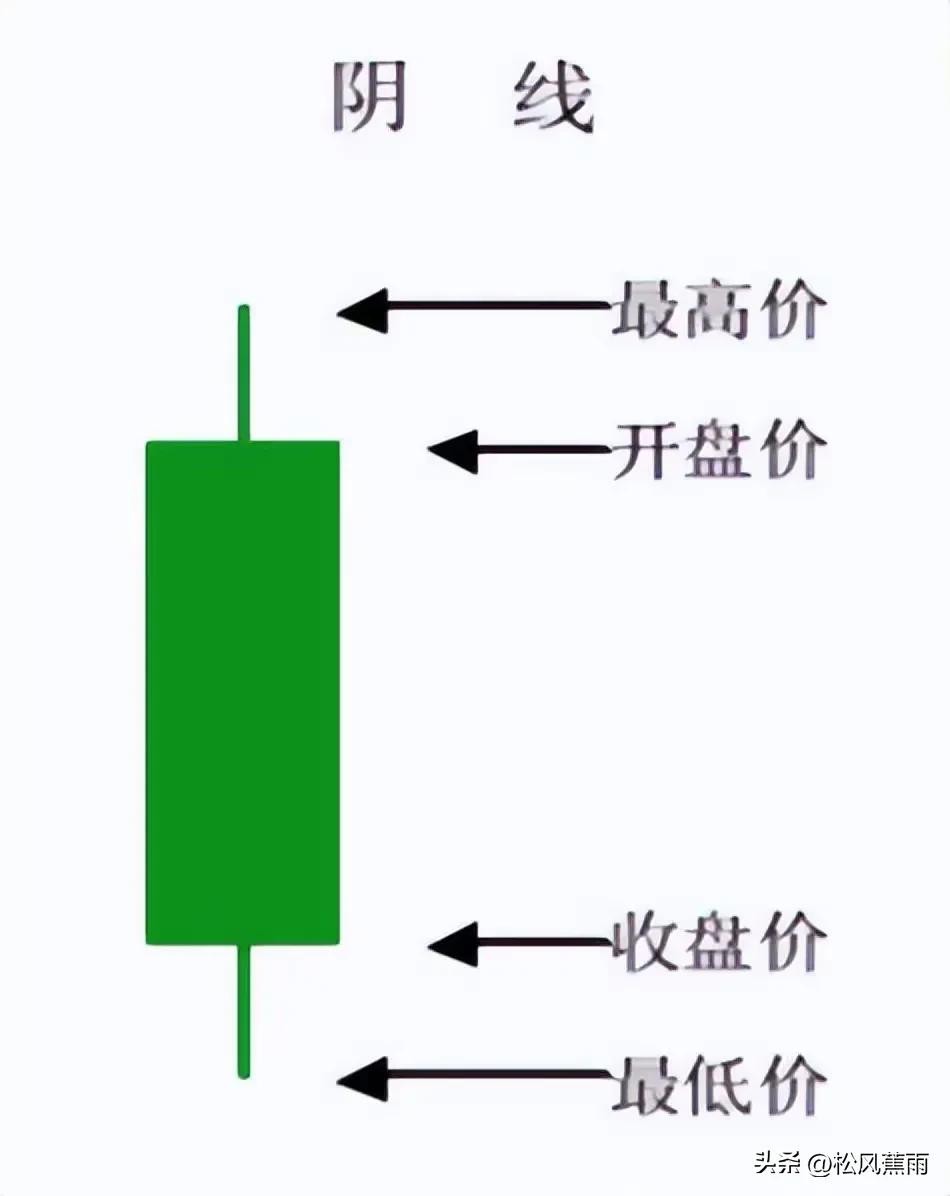 阴线:当收盘价低于开盘价时,实体部分一般绘成绿色,就叫阴线或者阴柱子