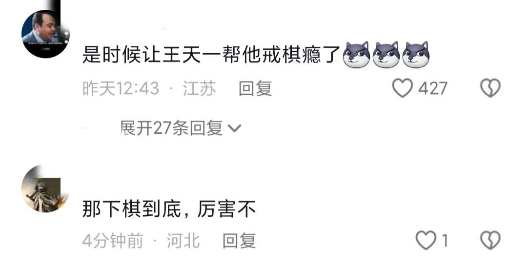 最后也有网友想让王天一帮他戒棋瘾