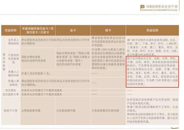 银卡会员进入休息室的这项公告,则意味着国航银卡会员价值的大幅缩水。在目前凤凰知音官网公布的知音贵宾会员手册中: