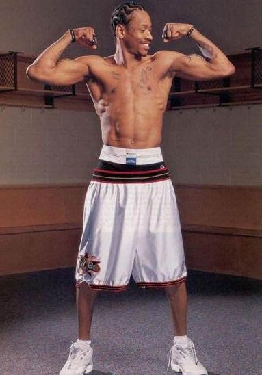 别看艾弗森看起来瘦弱,其实他也是一身腱子肉。他也是难得在拍摄写真的时候,露出了自己最真实身材。我们可以看到艾弗森不管是手臂肌肉,还有腹肌,还有那“鲨鱼肌”都是很明显,他的体脂率很低,除了肌肉就没有多余脂肪。