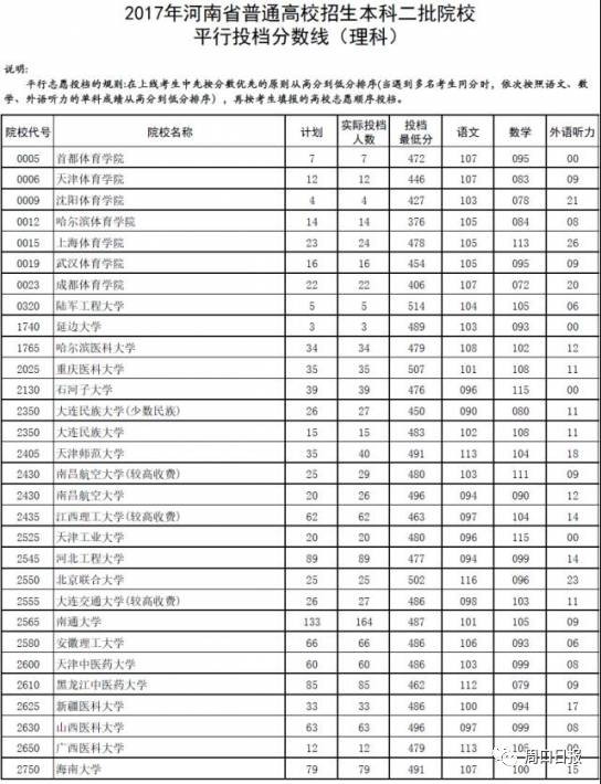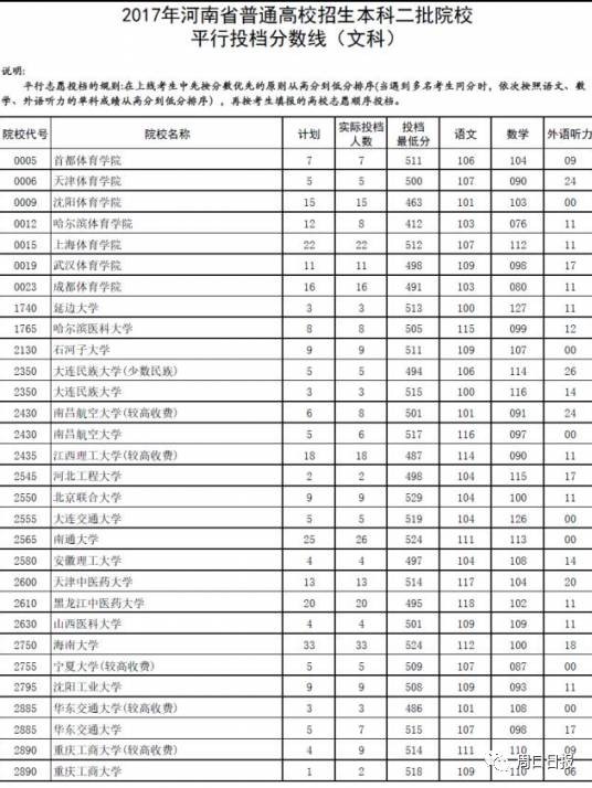 7月27日下午,河南省招生办公室公布2017年河南省普通高招本科二批院校平行投档分数线,我们一起来看看——