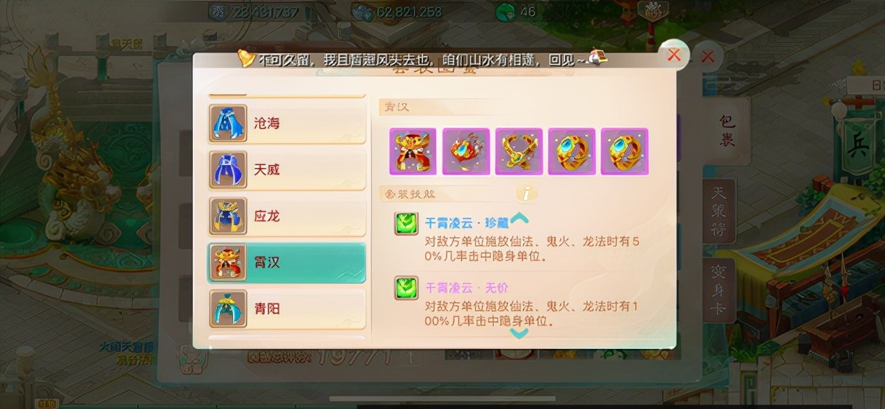 A11:千钧篇加主动buff,载物篇加被动buff,御兽篇增加宝宝buff。千钧篇推荐破军、强震击/破甲、强暴怒、连绵(PVP替换为精妙)、千刃、飞花溅玉;载物篇推荐无隙、铁壁、乾光、金刚(PVP替换为意气)、清明、强心(PVP替换为明镜)、冲冠、回风落雁;御兽篇推荐生机(pvp)、龙魂萦体。