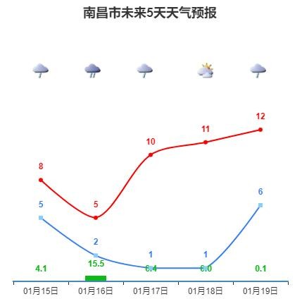 15日:小到中雨,局部雨夹雪,偏北风3~4级,5~8℃