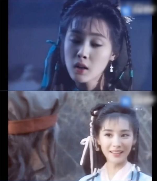 结果杨幂的长相配上“黄蓉”的这个造型,竟令人眼前一亮,当朱茵的各种喜怒哀乐表情用杨幂的脸来演绎,效果这样好。