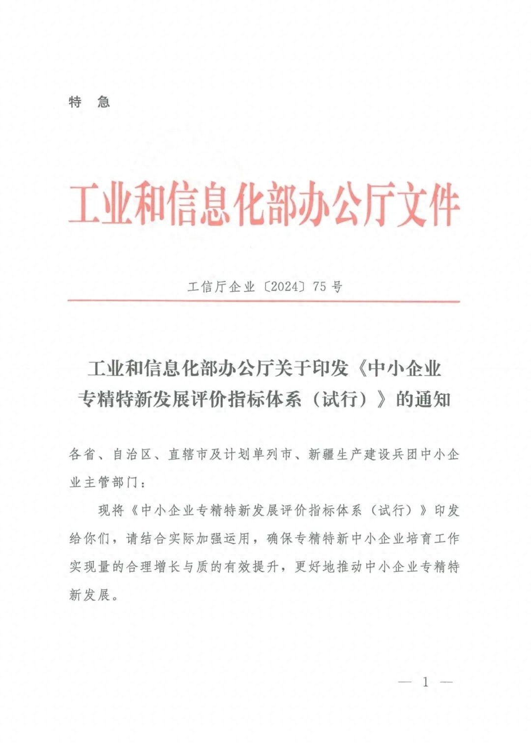 近日,工业和信息化部办公厅印发特急红头文件——《中小企业专精特新发展评价指标体系(试行)》。该评价指标体系的框架在去年12月初的“2024专精特新中小企业发展大会”上由工业和信息化部向外界揭晓。