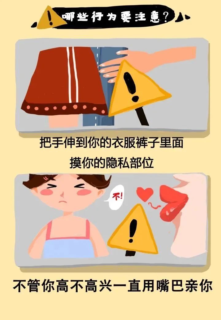 3、触碰警报:如果有人触碰你的私密部位,或者叫你触碰他们的私密部位,叫做“触碰警报”。