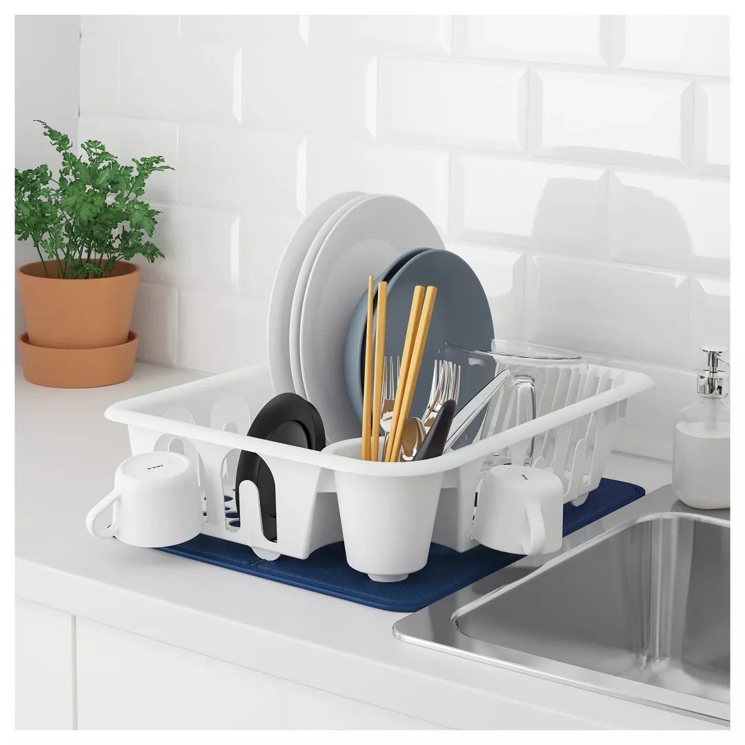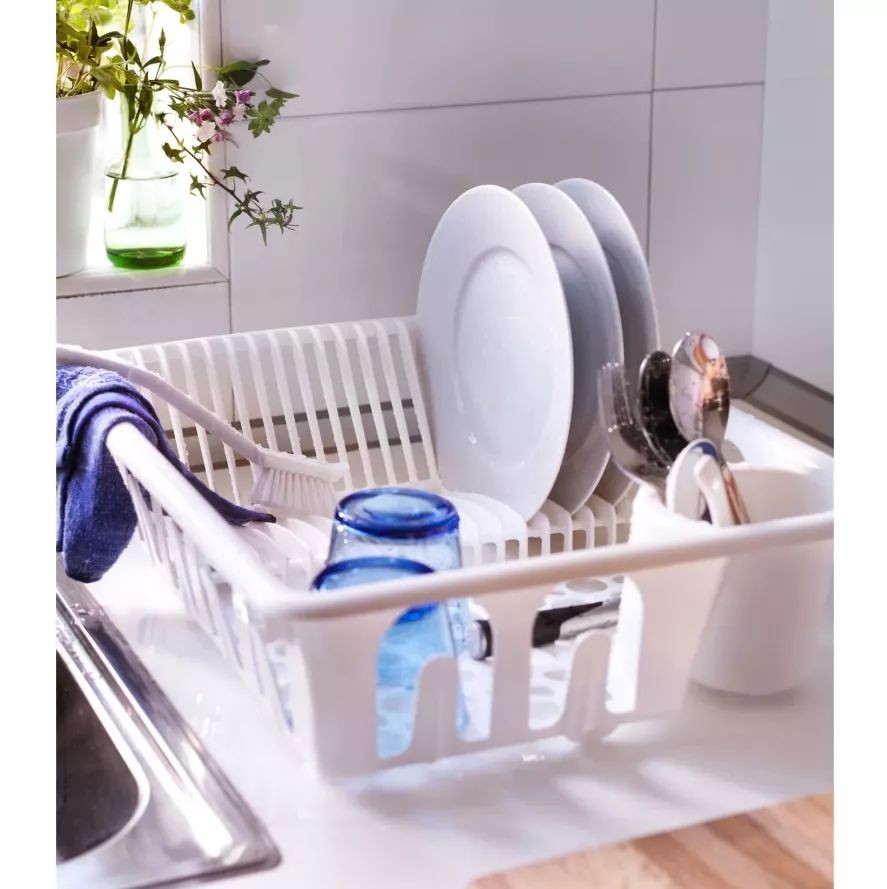 ◀白色的滤干架简约又大气,体积不大,不不占地方,且里面的槽口很多,可以放大量餐具。