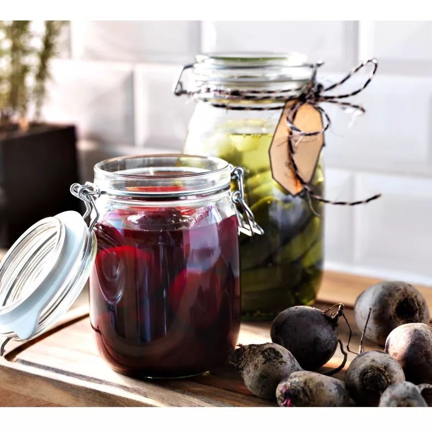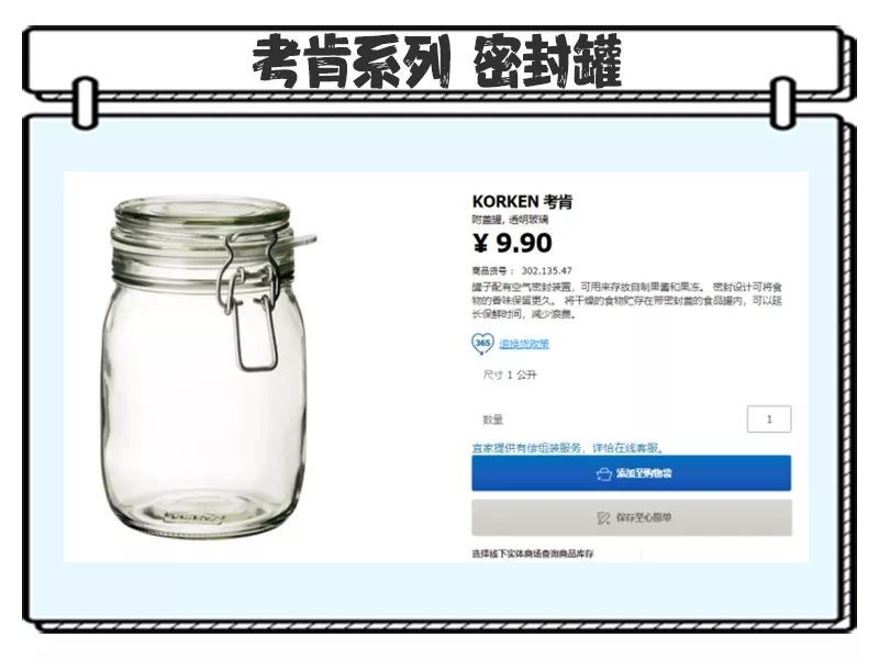 然后果断去宜家买了这个密封罐,它真的非常适合存放腌制的食物了,密封盖可以将食物的香味保留更久,干货也是一样。透明的罐子既可以方便找到需要的物品,也能让食物的颜值upup!▶