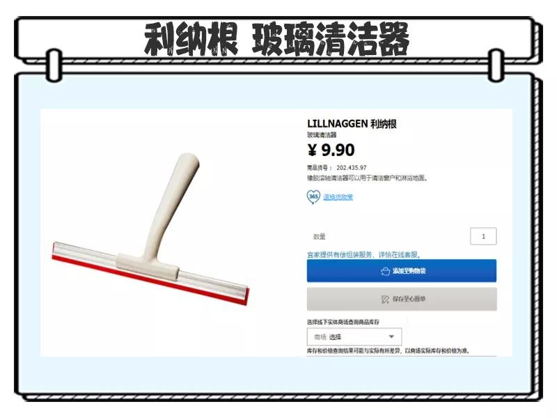 浴室真的离不开宜家这个玻璃清洁器了,小巧又便宜,放在浴室里每次洗完澡轻轻一刮雾气就全走了!奈斯!▶
