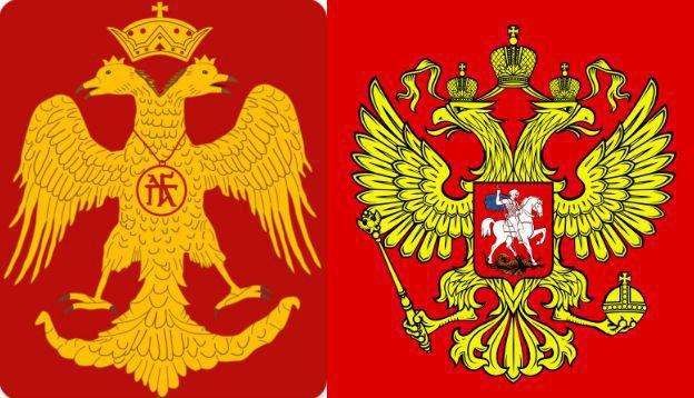 (左)拜占庭帝国国徽,(右)俄罗斯联邦国徽