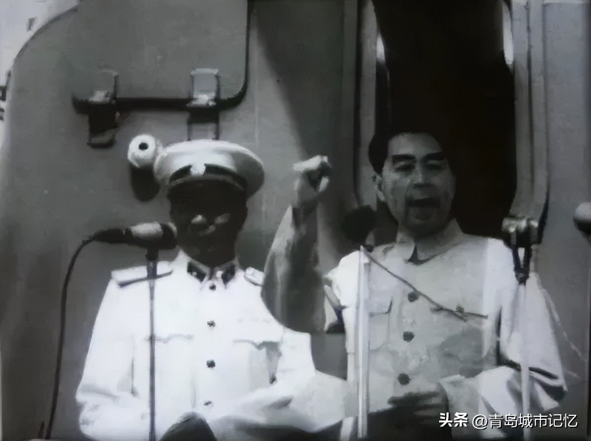 8月4日上午,周总理一行在海军司令员肖劲光的陪同下,首先在大港三号码头上检阅军官队伍。随后乘坐检阅舰驶出大港。胶州湾海面一艘艘舰艇整齐排列,各舰艇上彩旗招展,当周总理乘坐的快艇驶过各舰艇时,从扩音器中不断传出“毛主席万岁!”和水兵们应声高呼“万岁!万万岁! ”的欢呼声。