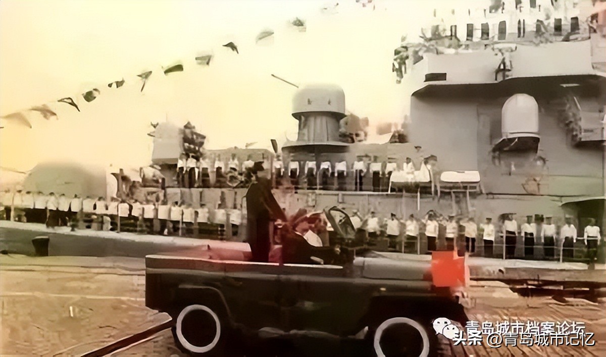 新中国第一次海上阅兵,1957年5月,在北京举行的庆祝建军三十周年筹备会上,中央军委作出决定:8月在青岛举行海上阅兵式。成军仅八年的人民海军第一次以水兵徒步方阵之外的形式接受共和国最高领导人的检阅,而青岛则以这样一种荣耀的方式走进了人民海军的历史。