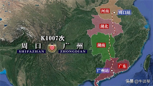 K1007次列车运行线路图:河南周口开往广东广州