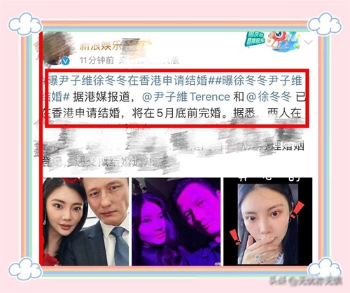 徐冬冬,尹子维终于修成正果,被爆已经在香港申请登记结婚,