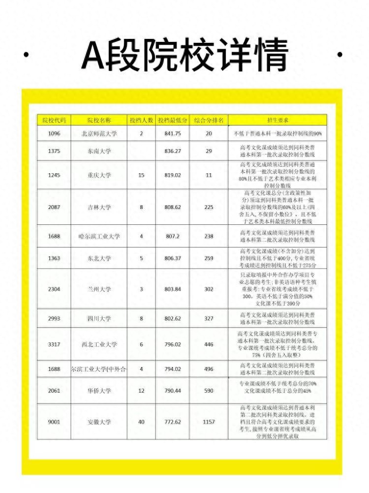 A段和B段都是要求专业艺术课、文化课都要过线,只是这个线不同而已,达到A段的要求去报B段肯定是没有问题的,但是B段的要求能不能达到A段就不一定了,A段里面某些院校要求专业课的分数要超过,专业课总分的75%或者更高。