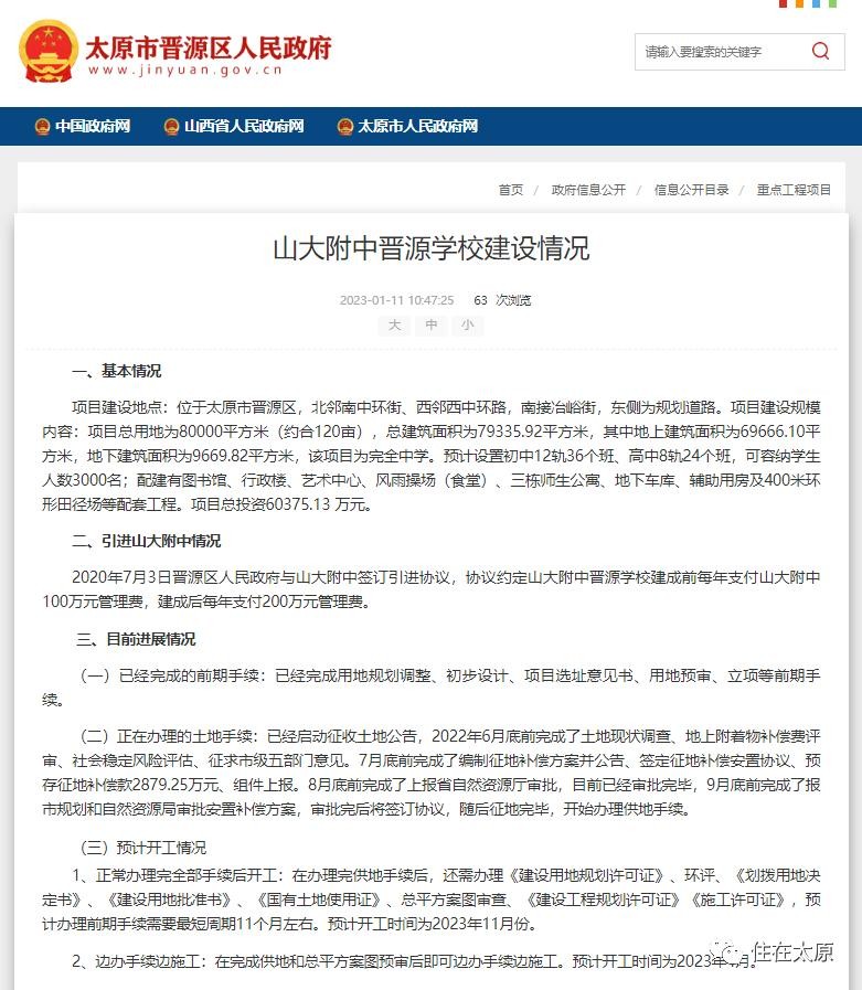早在今年年初,在晋源区六届人大四次会议中获悉,山大附中晋源学校已被列入晋源区2023年继续实施十件民生实事当中。