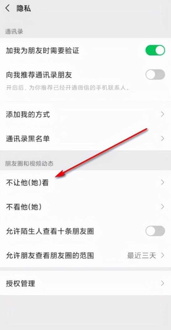 4、打开隐私页面后,点击不让他(她)看。