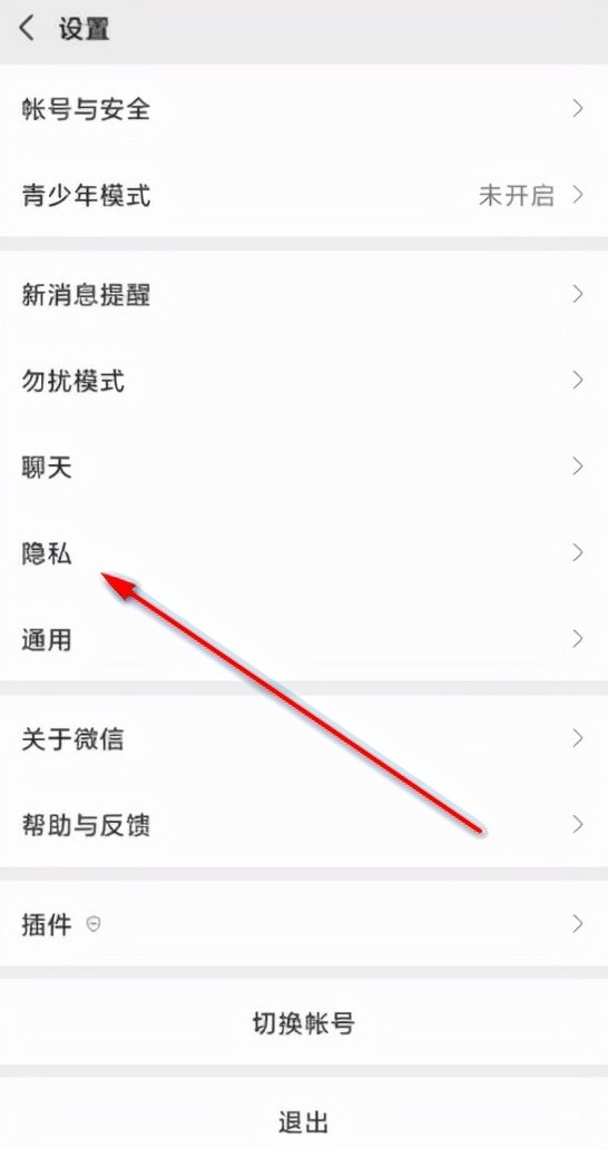 3、打开设置页面后,点击隐私。