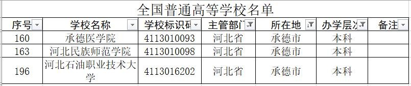(4)承德的本科学校(3所):承德有3所公办的本科院校,分别是承德医学院,河北民族师范学院和河北石油职业技术大学。
