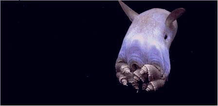 为什么称“小飞象”为特殊的章鱼呢?因为“小飞象”并不是章鱼,只是和章鱼科的海洋生物同属八腕目,外形看起来像章鱼罢了,它其实是须蛸科的软体动物,主要栖居于水深超过1,000米的大陆坡下区,在大陆坡以外的深海平原,利用自己的膜进行收缩和舒张鼓动水流,从而利用水流使自己漂浮,或者游动。