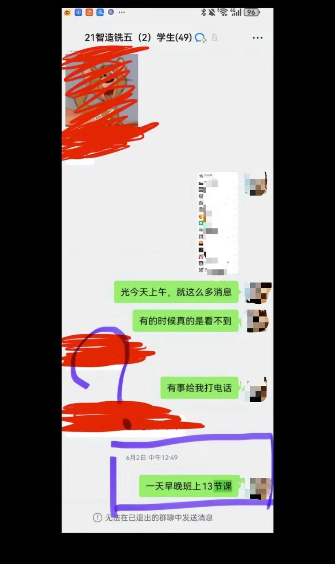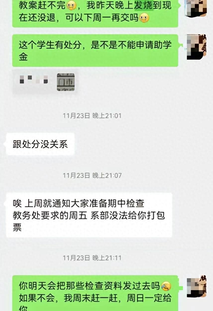 在看下这位老师在班级群里的发言,一天13节课,难以想象这是一位大学老师。