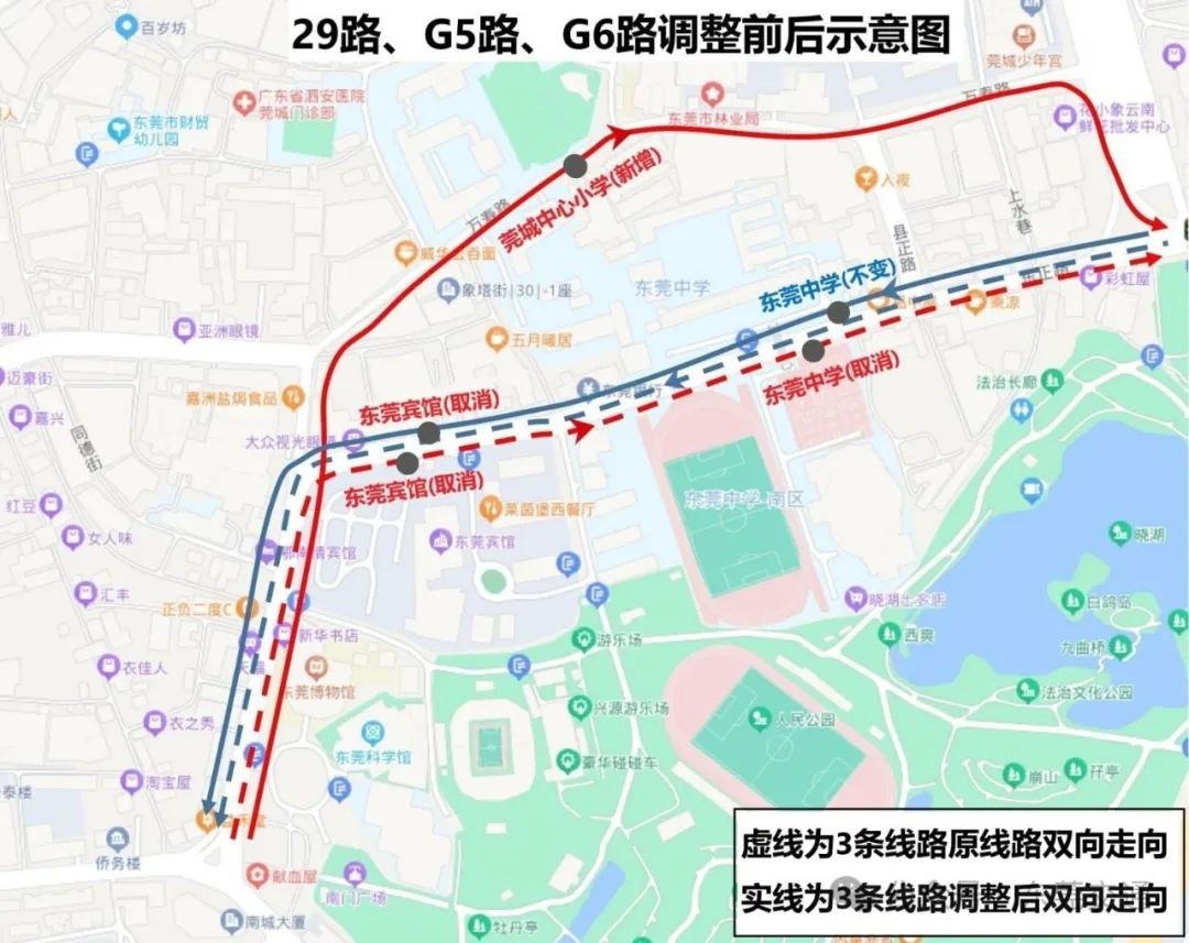 G5璺?/strong>鍙栨秷鍋滈潬鈥滀笢鑾炲棣嗐€佷笢鑾炰腑瀛︹€濈珯锛屾柊澧炲仠闈犫€滆帪鍩庝腑蹇冨皬瀛︹€濈珯銆?/p>