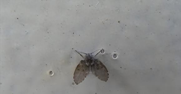 卫生间的“暗夜幽灵”蛾蠓个头不大,比苍蝇小上一圈,体型则比蚊子宽一些。它们拥有一双呆萌的小翅膀,但是飞行能力很差,只能在短距离内慢悠悠地飞翔,所以我们常看到它们静静地贴在墙壁或天花板上。当人们从旁边经过时,蛾蠓才会轻轻扇动翅膀,扇动两下,就又回到原地。这种懒洋洋的飞行方式让人们往往忽视了它们的存在。
