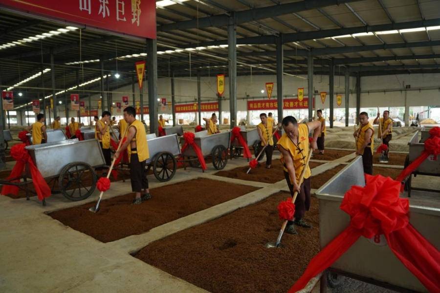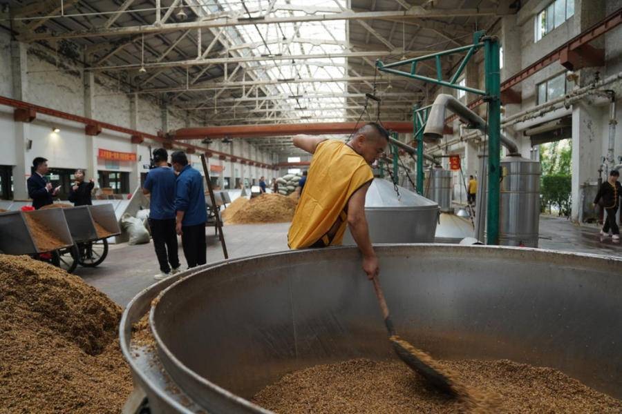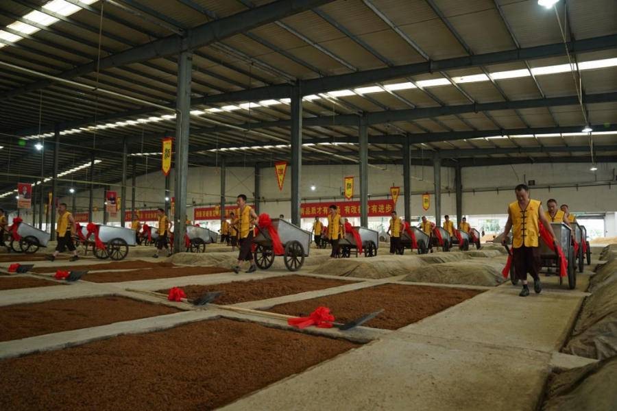 在开窖仪式现场,花冠集团总经理宣读了《开窖赋》,并在九时九分准时鸣锣开窖。锣声就是指令,听到锣声,酿酒师傅们推车舞锹齐上阵,忙活开来。随着开窖起糟工作的进行,酿酒师傅把酒醅上甑锅蒸酒,不多时一股股散发着浓郁酒香的新酒从甑锅中流了出来。馏酒过程中,原酒的口感和风味都会不断变化,酿酒师傅根据不同的特性和品质分段摘取,边品尝边摘。按照八段摘酒法,把馏酒过程分为八段,后头、后上、后中、后下和前头、前上、前中、前下,边品尝边摘酒。其中,底层糟醅所产后馏分酒以香、浓、甜、净,圆润丰满为特点,中下层、上层摘取的前馏分酒以香、爽、醇、净,放香好为特点。基于践行中华储酒文化节酿好酒、储好酒的准则,花冠集团从秋酿新酒中,把最具风格的、最好品质的酒,通过八段摘酒法选出来,然后分级、分容器储存起来,使酒体均衡缓慢地发生氧化和酯化反应,产生香酯类物质,酒体也会变得格外焦香馥郁,实现品质的“蝶变”。